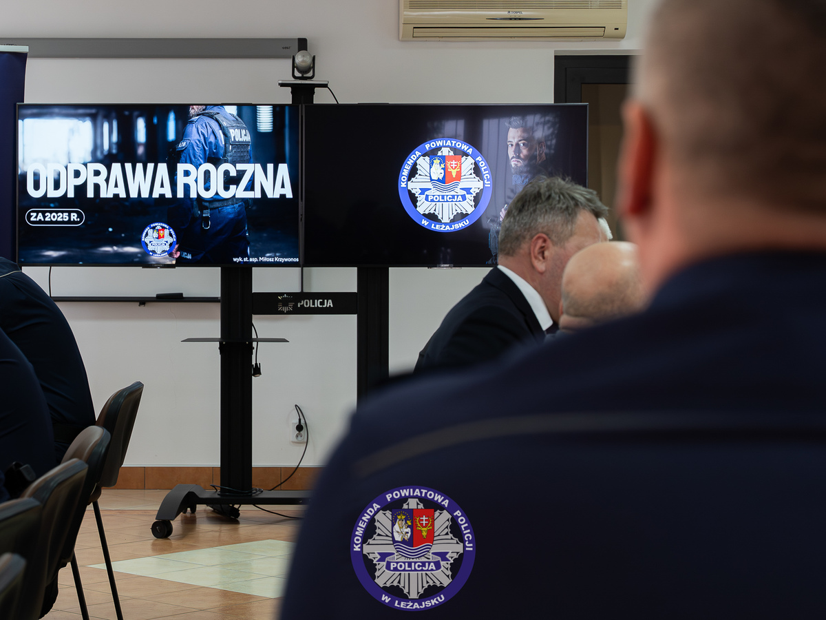 W Komendzie Powiatowej Policji w Leżajsku odbyła się odprawa roczna z udziałem Zastępcy Komendanta Wojewódzkiego Policji w Rzeszowie mł. insp. Piotra Stępki podsumowująca wyniki pracy funkcjonariuszy za 2025 rok. W spotkaniu uczestniczyła także kadra kierownicza leżajskiej jednostki, policjanci, pracownicy cywilni oraz zaproszeni przedstawiciele instytucji i samorządów. Podczas narady omówiono efekty służby, stan kadrowy oraz kierunki działań na kolejne lata.